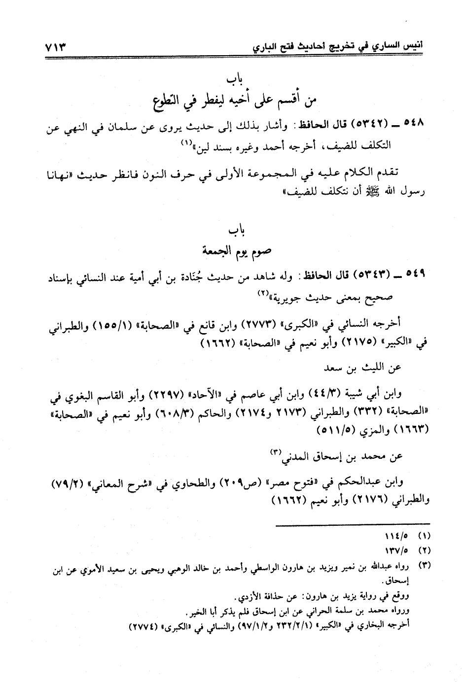 548 - (5342) قال الحافظ: وأشار بذلك إلى حديث يروى عن سلمان في النهي عن التكلف للضيف، أخرجه أحمد وغيره بسند لين" (¬1)