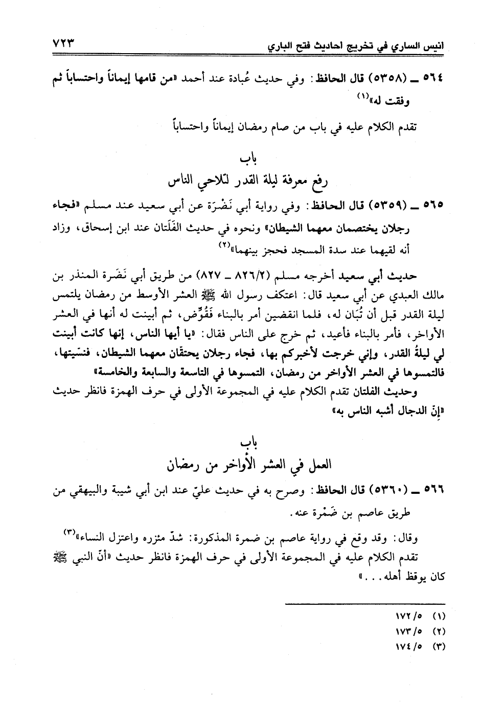 564 - (5358) قال الحافظ: وفي حديث عُبادة عند أحمد "من قامها إيماناً واحتساباً ثم وفقت له" (¬1)