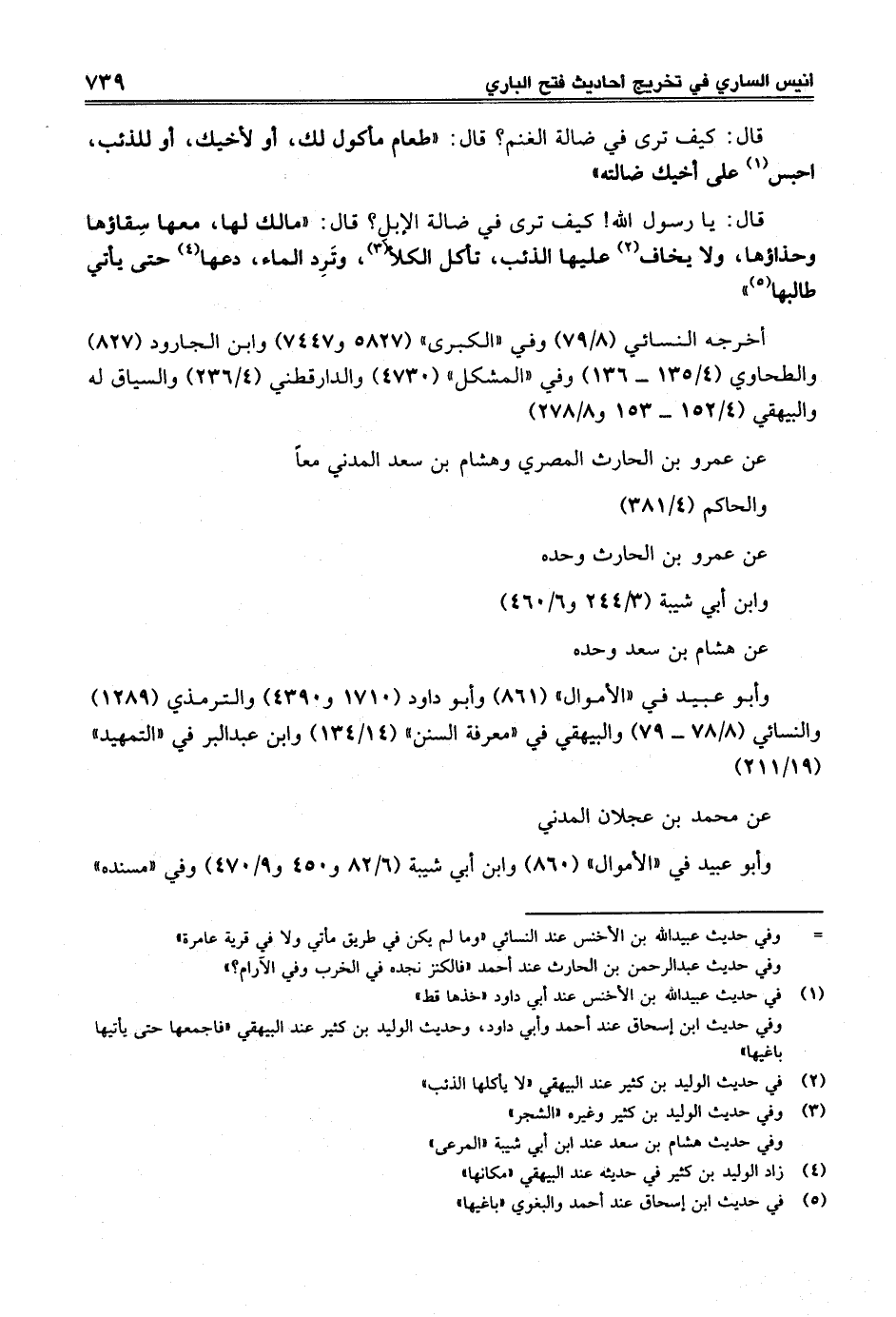 قال: كيف ترى في ضالة الغنم؟ قال: "طعام مأكول لك، أو لأخيك، أو للذئب، احبس (¬1) على أخيك ضالته"
