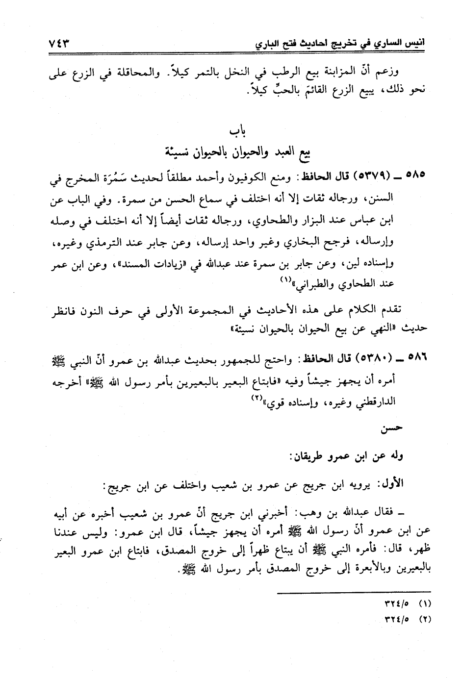 586 - (5380) قال الحافظ: واحتج للجمهور بحديث عبد الله بن عمرو أنّ النبي -صلى الله عليه وسلم- أمره أن يجهز جيشاً وفيه "فابتاع البعير بالبعيرين بأمر رسول الله -صلى الله عليه وسلم-" أخرجه الدارقطني وغيره، وإسناده قوي" (¬2)