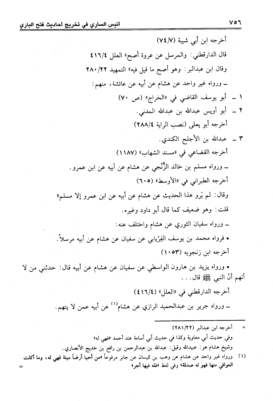 (¬1) ورواه غير واحد عن هشام عن وهب بن كيان عن جابر مرفوعاً "من أحيا أرضاً ميتة فهي له، وما أكلت العوافي منها فهو له صدقة" وفي لفظ "فله فيها أجر" =