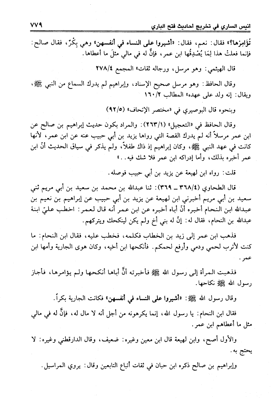 قال الطحاوي (4/ 368 - 369): ثنا عبد الله بن محمد بن سعيد بن أبي مريم ثني سعيد بن أبي مريم أخبرني ابن لهيعة عن يزيد بن أبي حبيب عن إبراهيم بن نعيم بن عبد الله ابن النحام أخبره أن أباه أخبره عن ابن عمر أنه قال لعمر: اخطب عليّ ابنة عبد الله بن النحام، فقال له: إنّ له بني أخ ولم يكن لينكحك ويتركهم.