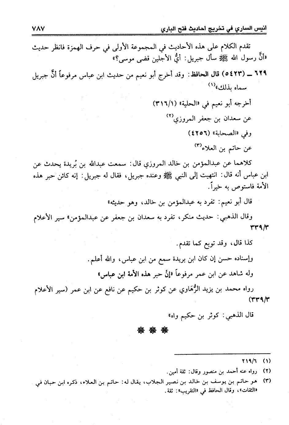 629 - (5423) قال الحافظ: وقد أخرج أبو نعيم من حديث ابن عباس مرفوعاً أنَّ جبريل سماه بذلك" (¬1)