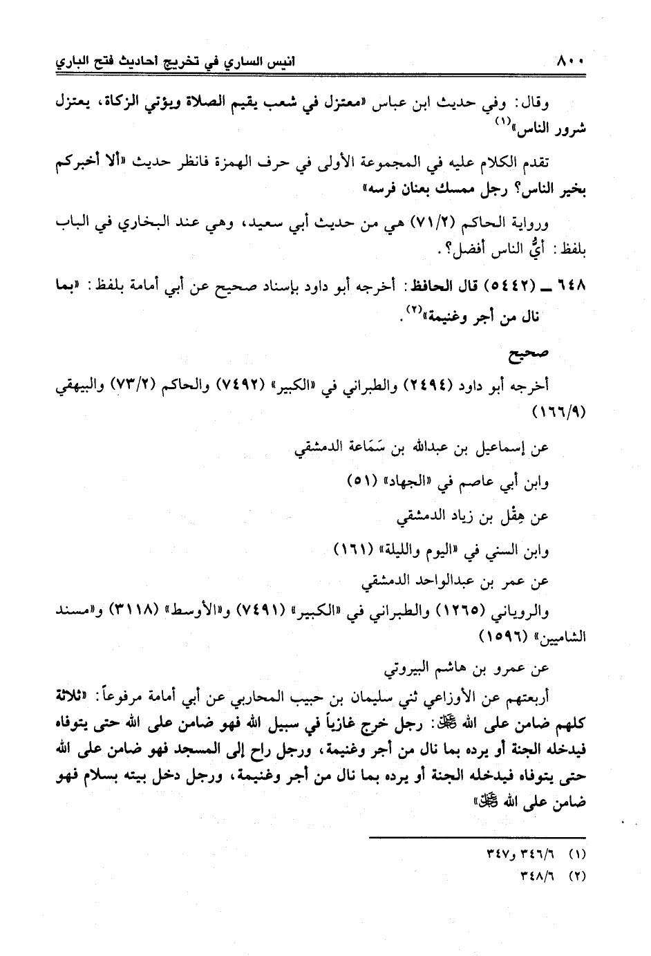 648 - (5442) قال الحافظ: أخرجه أبو داود بإسناد صحيح عن أبي أمامة بلفظ: "بما نال من أجر وغنيمة" (¬2).