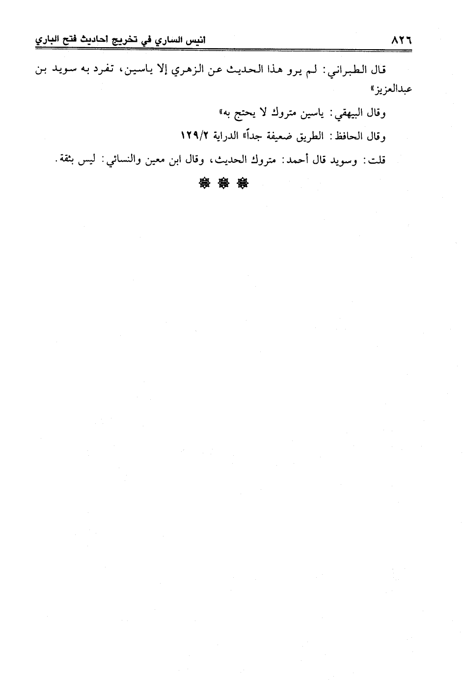 قلت: وسويد قال أحمد: متروك الحديث، وقال ابن معين والنسائي: ليس بثقة.