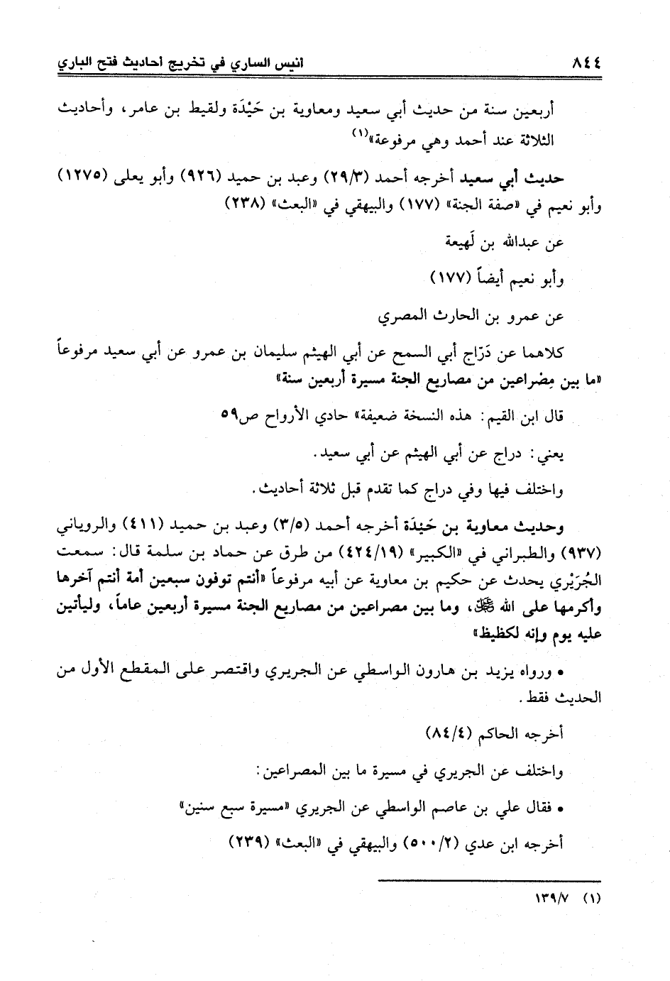 كلاهما عن دَرّاج أبي السمح عن أبي الهيثم سليمان بن عمرو عن أبي سعيد مرفوعاً "ما بين مِصْراعين من مصاريع الجنة مسيرة أربعين سنة"