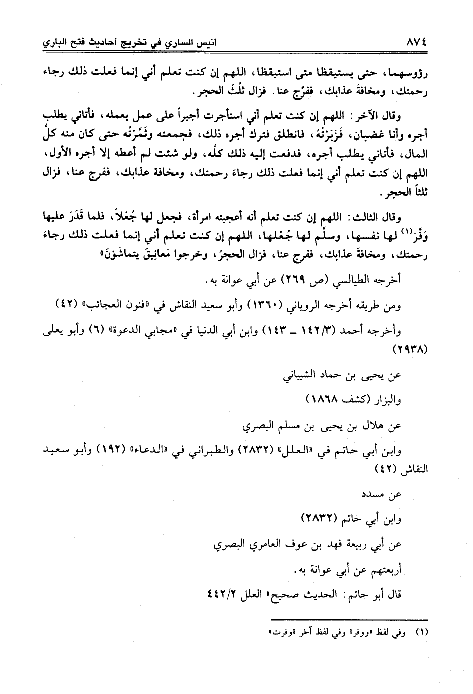 قال أبو حاتم: الحديث صحيح" العلل 2/ 442