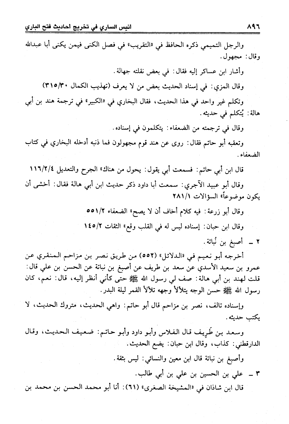 وتكلم غير واحد في هذا الحديث، فقال البخاري في"الكبير" في ترجمة هند بن أبي هالة: يُتكلم في حديثه.