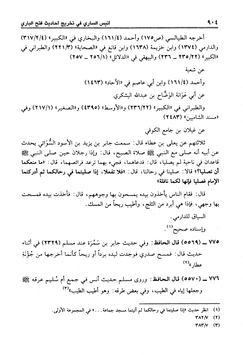 776 - (5570) قال الحافظ: وروى مسلم حديث أنس في جمع أم سُليم عرقه -صلى الله عليه وسلم- وجعلها إياه في الطيب، وفي بعض طرقه: وهو أطيب الطيب" (¬3)