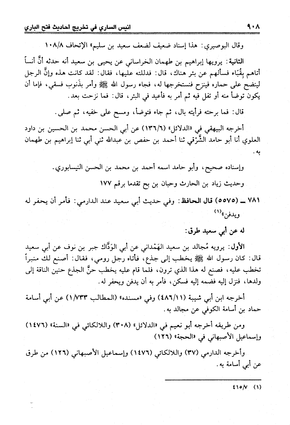 781 - (5575) قال الحافظ: وفي حديث أبي سعيد عند الدارمي: فأمر أن يحفر له ويدفن" (¬1)
