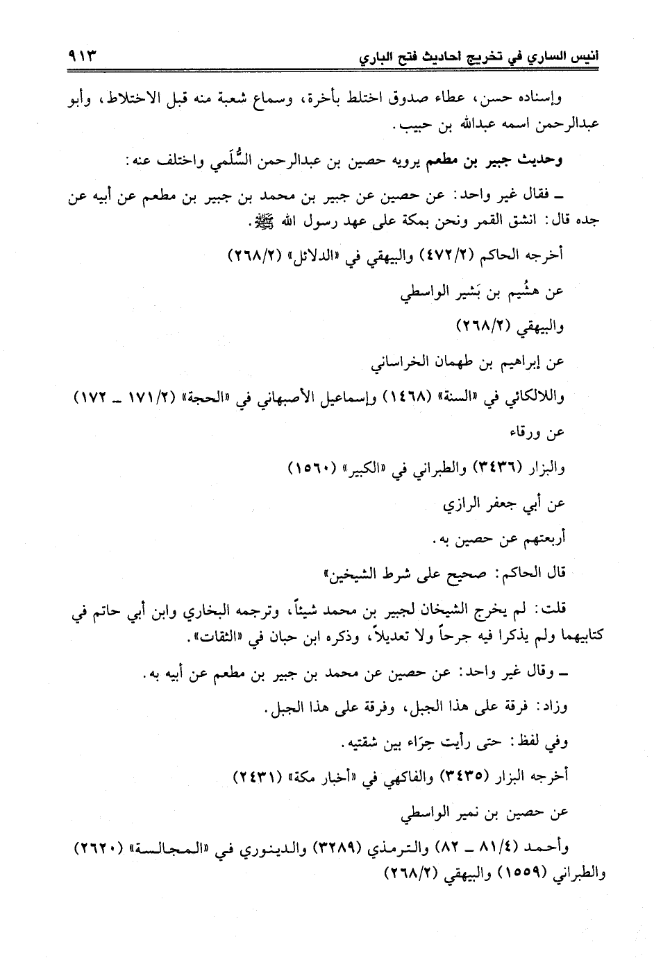 - فقال غير واحد: عن حصين عن جبير بن محمد بن جبير بن مطعم عن أبيه عن جده قال: انشق القمر ونحن بمكة على عهد رسول الله -صلى الله عليه وسلم-.