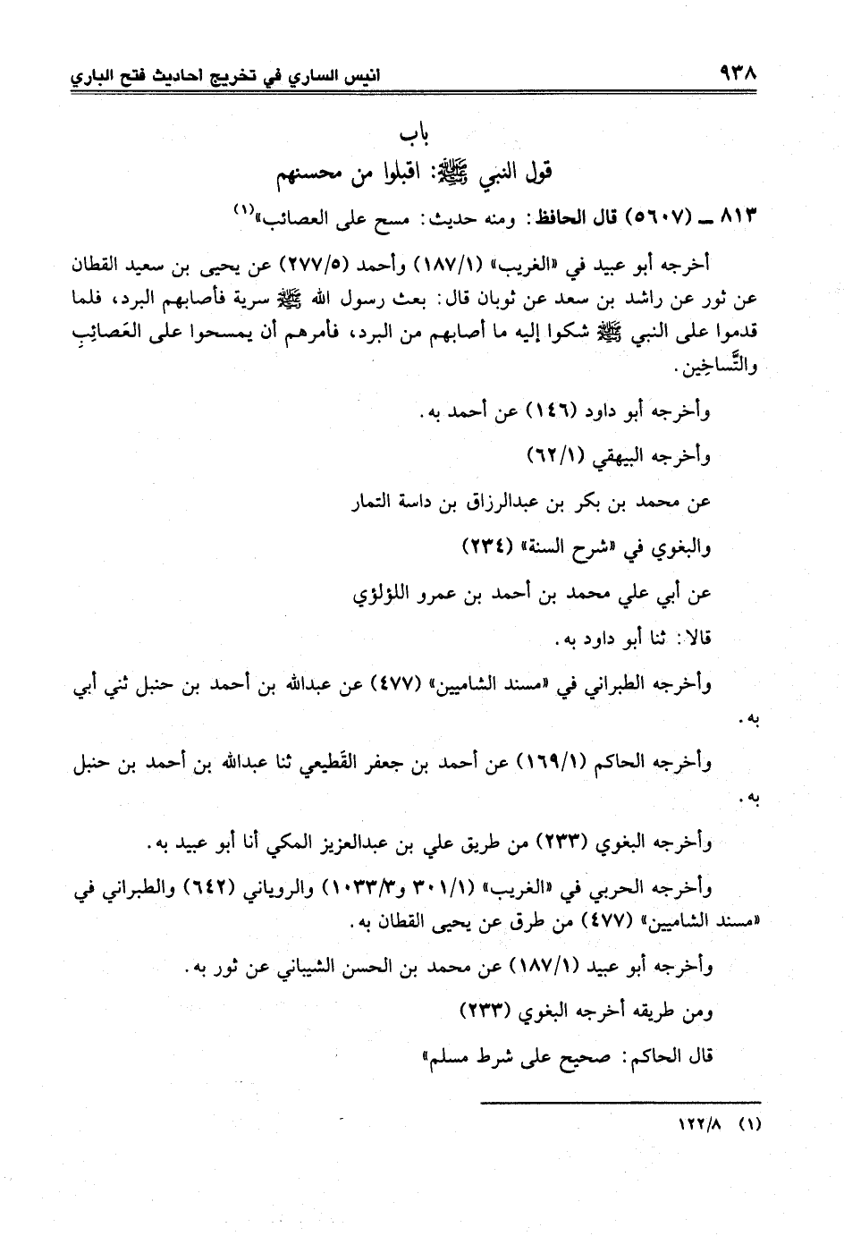 813 - (5607) قال الحافظ: ومنه حديث: مسح على العصائب" (¬1)