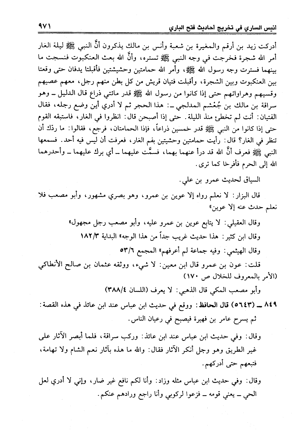 849 - (5643) قال الحافظ: ووقع في حديث ابن عباس عند ابن عائذ في هذه القصة: ثم يسرح عامر بن فهيرة فيصبح في رعيان الناس.