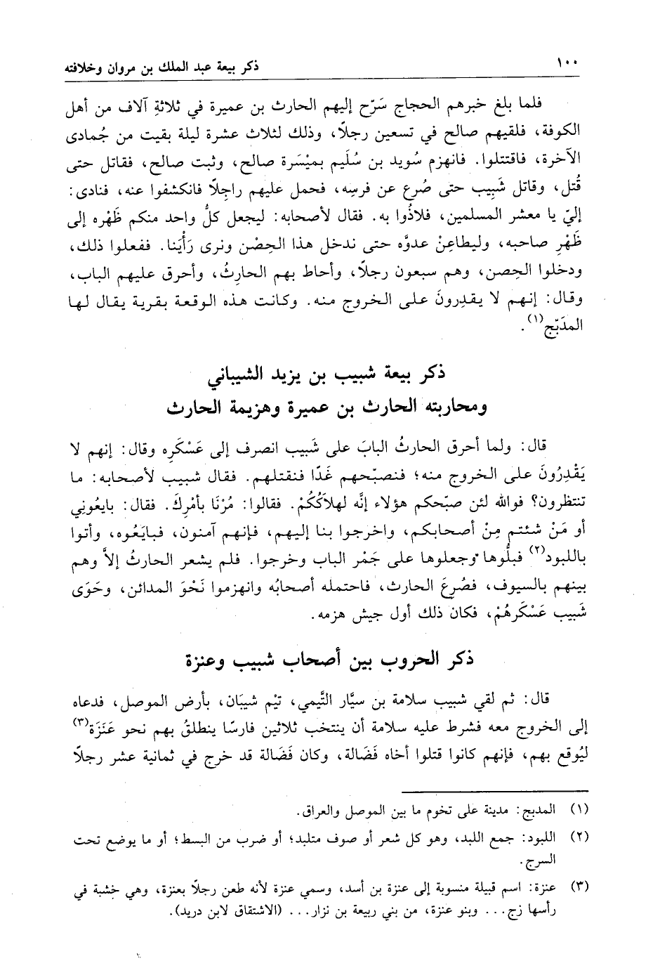 ذكر بيعة شبيب بن يزيد الشيباني ومحاربته الحارث بن عميرة وهزيمة الحارث