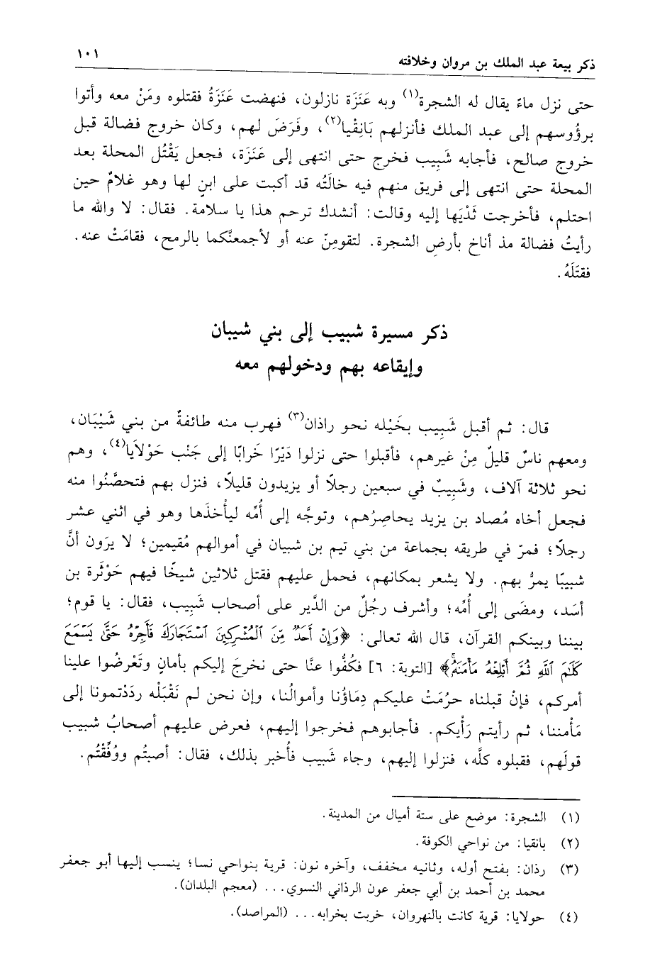 ذكر مسيرة شبيب إلى بني شيبان وإيقاعه بهم ودخولهم معه