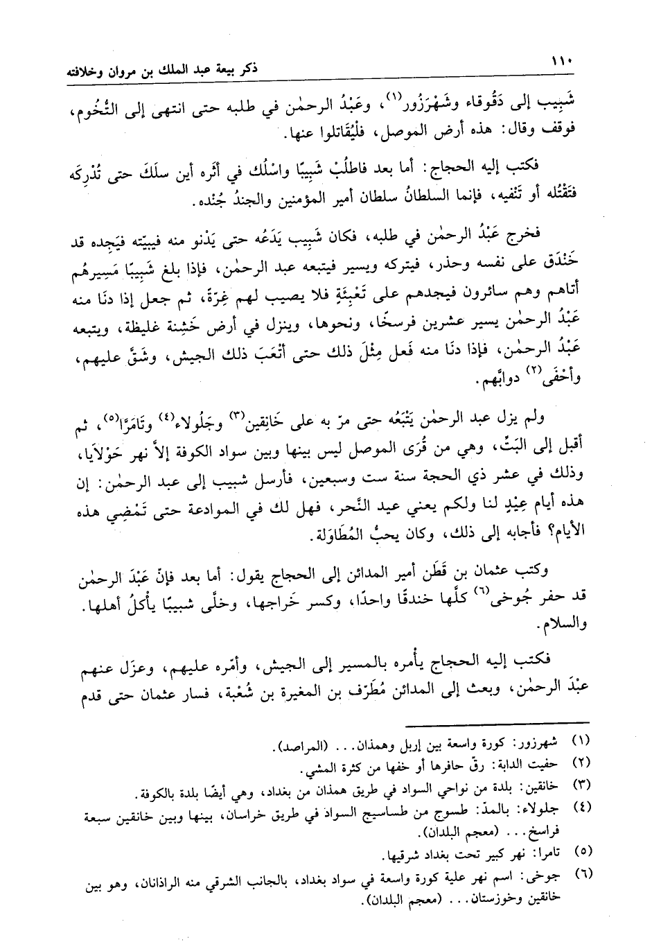 شبيب إلى دقوقاء وشهرزور ، وعبد الرحمن في طلبه حتى انتهى إلى التخوم ، فوقف وقال : هذه أرض الموصل ، فليقاتلوا عنها .
