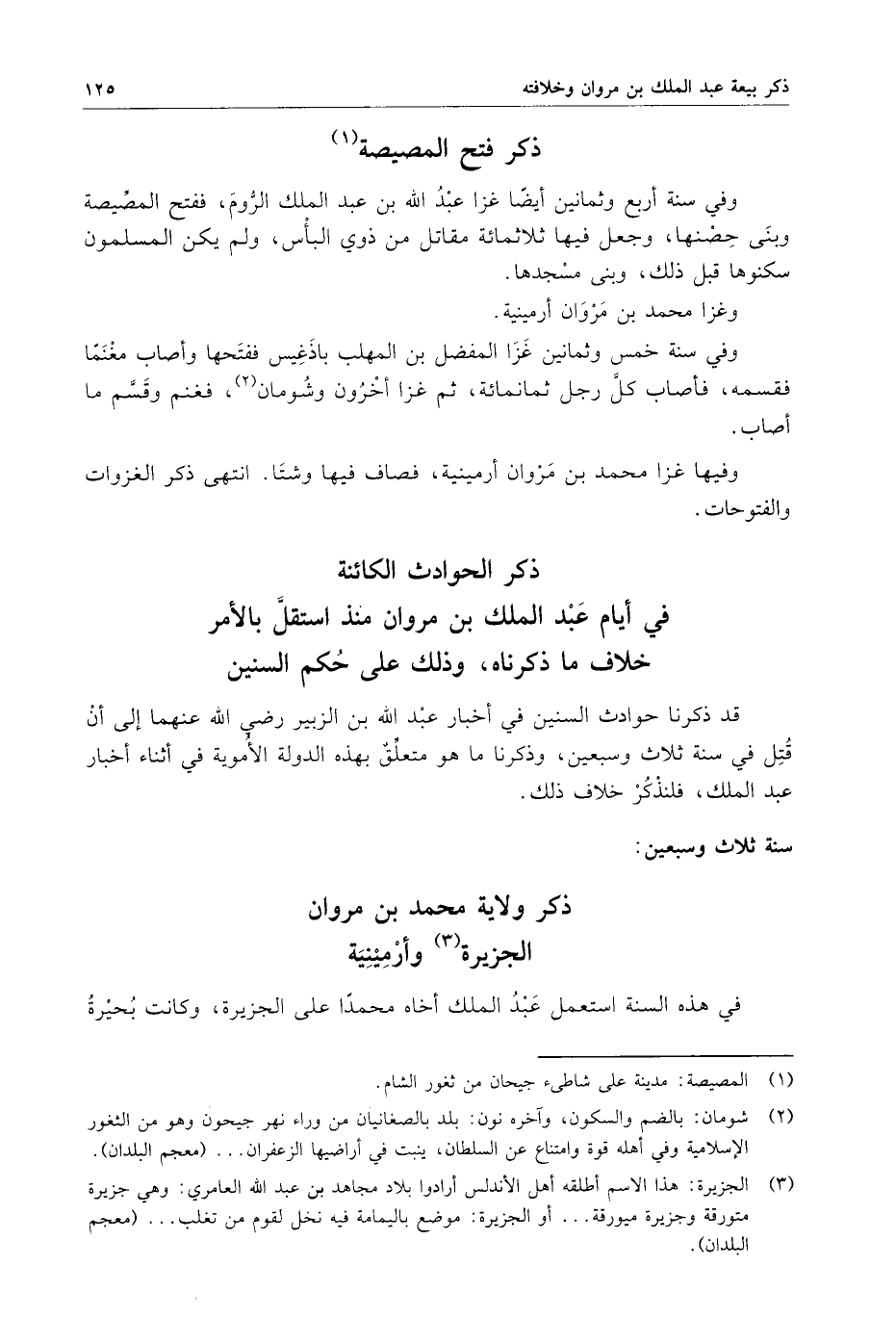 وفيها غزا محمد بن مروان أرمينية ، فصاف فيها وشتا . انتهى ذكر الغزوات والفتوحات .