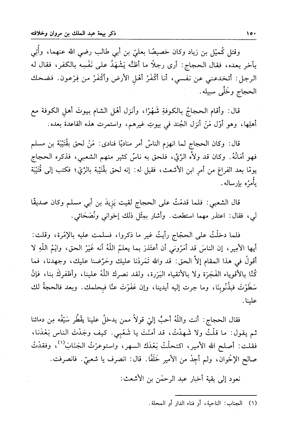 نعود إلى بقية أخبار عبد الرحمن بن الأشعث :