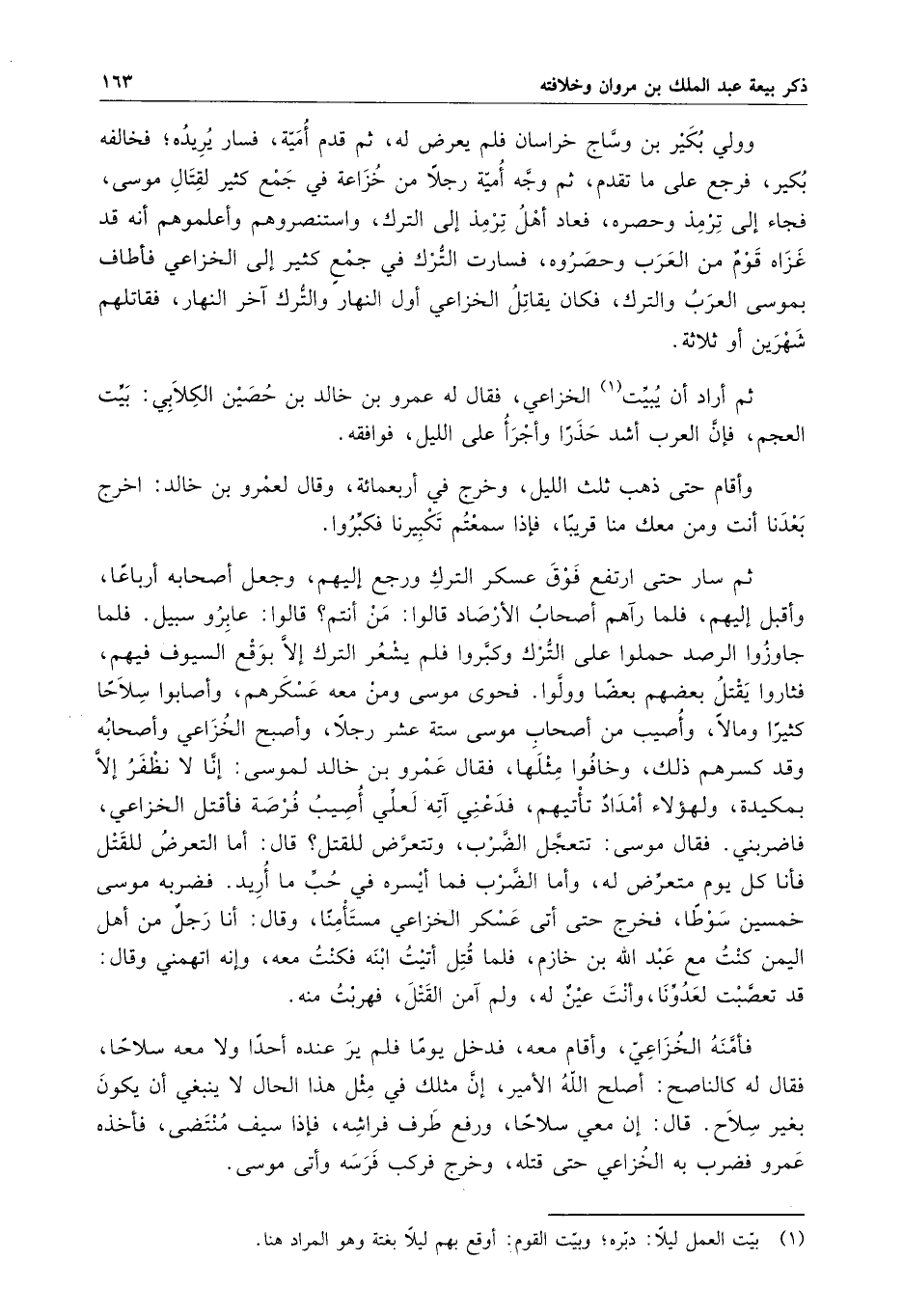 وولى بكير بن وساج خراسان فلم يعرض له ، ثم قدم أمية ، فسار يريده ؛ فخالفه بكير ، فرجع على ما تقدم ، ثم وجه أمية رجلاً من خزاعة في جمع كثير لقتال موسى ، فجاء إلى ترمذ وحصره ، فعاد أهل ترمذ إلى الترك ، واستنصروهم وأعلموهم أنه قد غزاه قومٌ من العرب وحصروه ، فسارت الترك في جمعٍ كثير إلى الخزاعي فأطاف بموسى العرب والترك ، فكان يقاتل الخزاعي أول النهار والترك آخر النهار ، فقاتلهم شهرين أو ثلاثة .