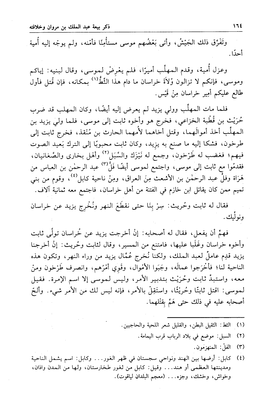 وعزل أمية ، وقدم المهلب أميرا ، فلم يعرض لموسى ، وقال لبنيه : إياكم وموسى ، فإنكم لا تزالون ولاة خراسان ما دام هذا الثط بمكانه ، فإن قتل فأول طالع عليكم أمير خراسان من قيس .
