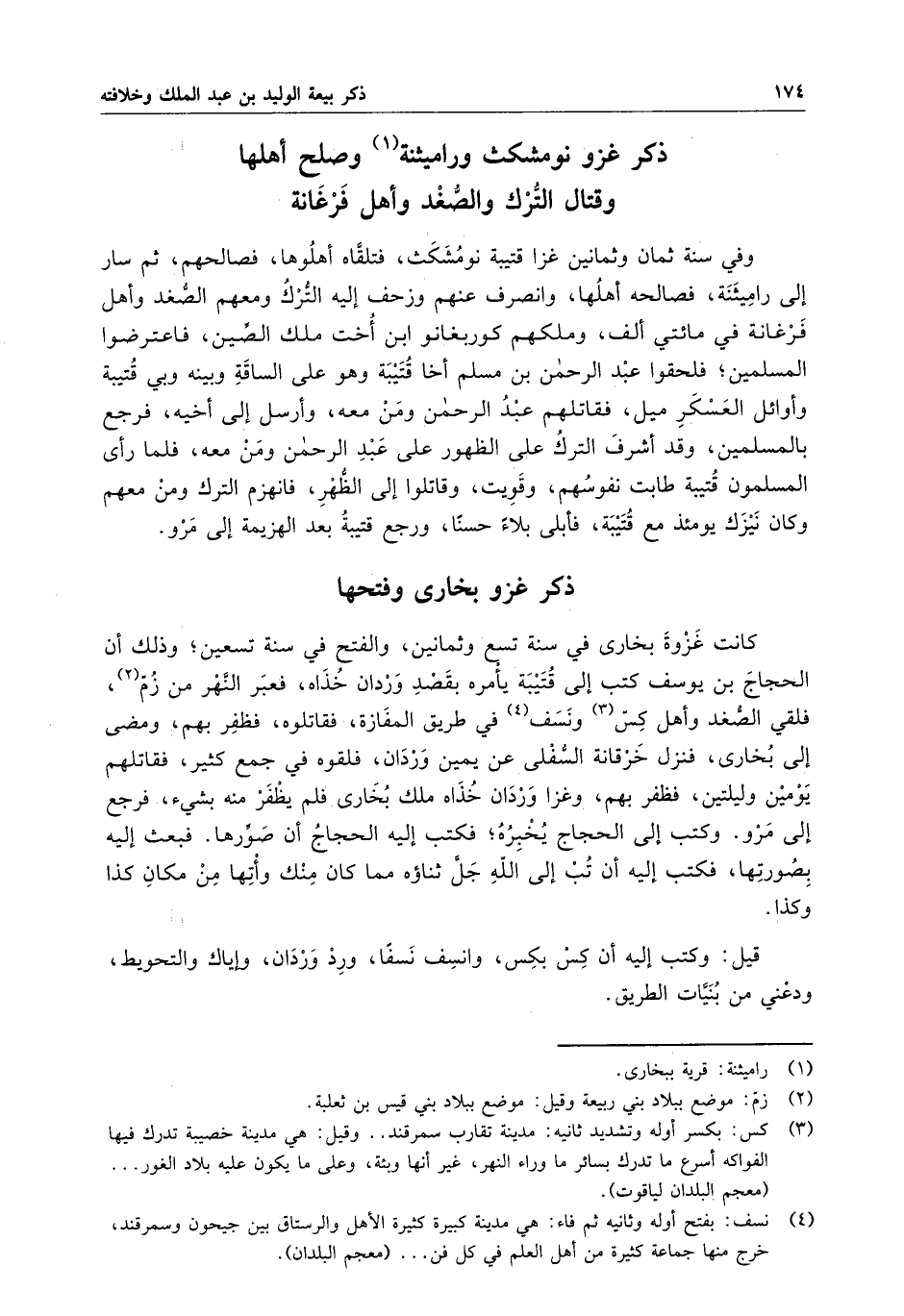 ذكر غزو نومشكث وراميثنة وصلح أهلها وقتال الترك والصغد وأهل فرغانة