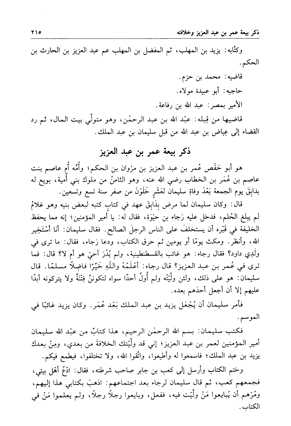 ذكر بيعة عمر بن عبد العزيز