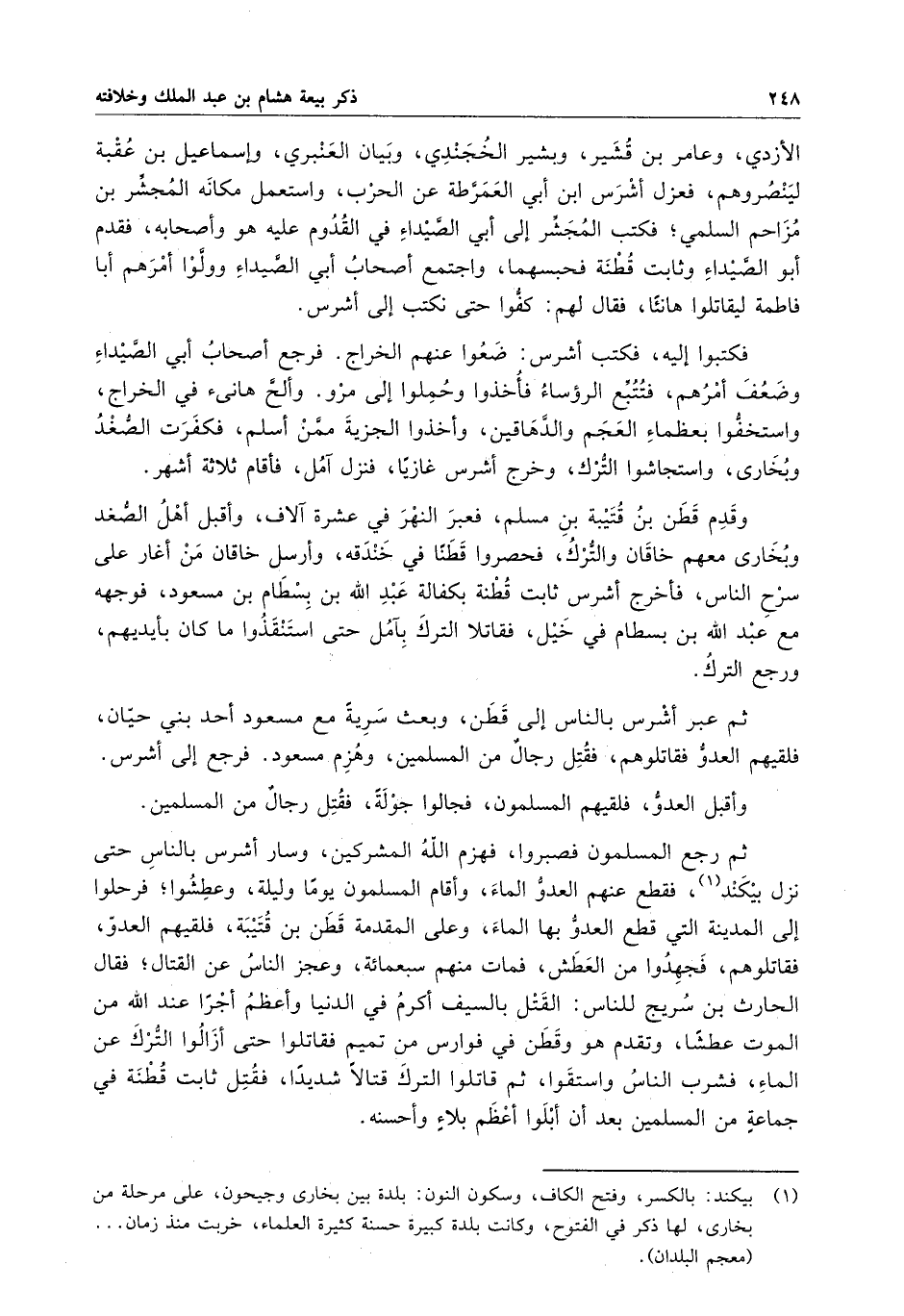 ثم عبر أشرس بالناس إلى قطن ، وبعث سريةً مع مسعود أحد بني حيان ، فلقيهم العدو فقاتلوهم ، فقتل رجالٌ من المسلمين ، وهزم مسعود . فرجع إلى أشرس .