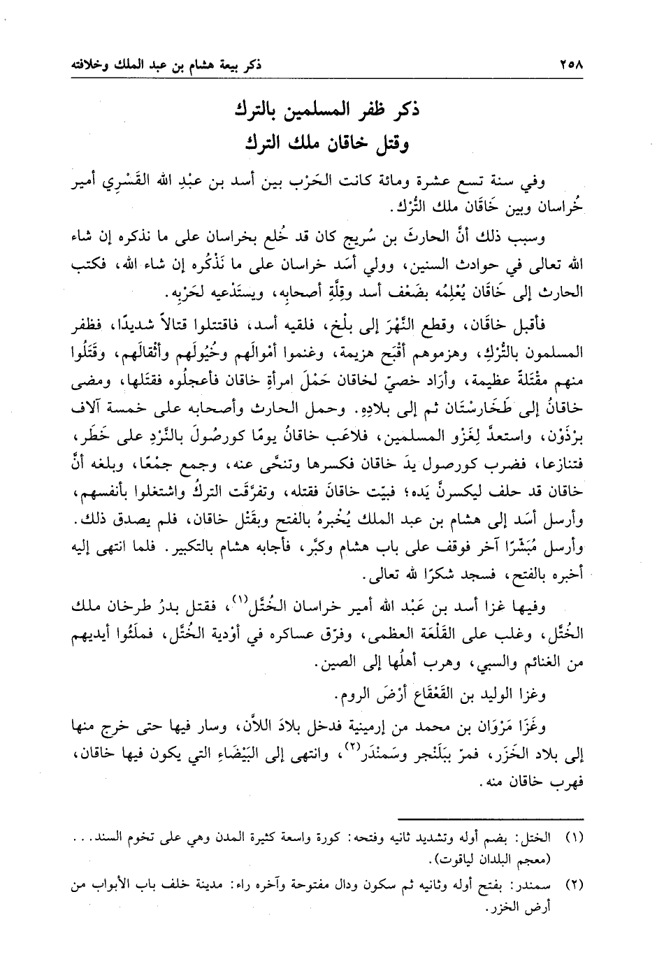ذكر ظفر المسلمين بالترك وقتل خاقان ملك الترك