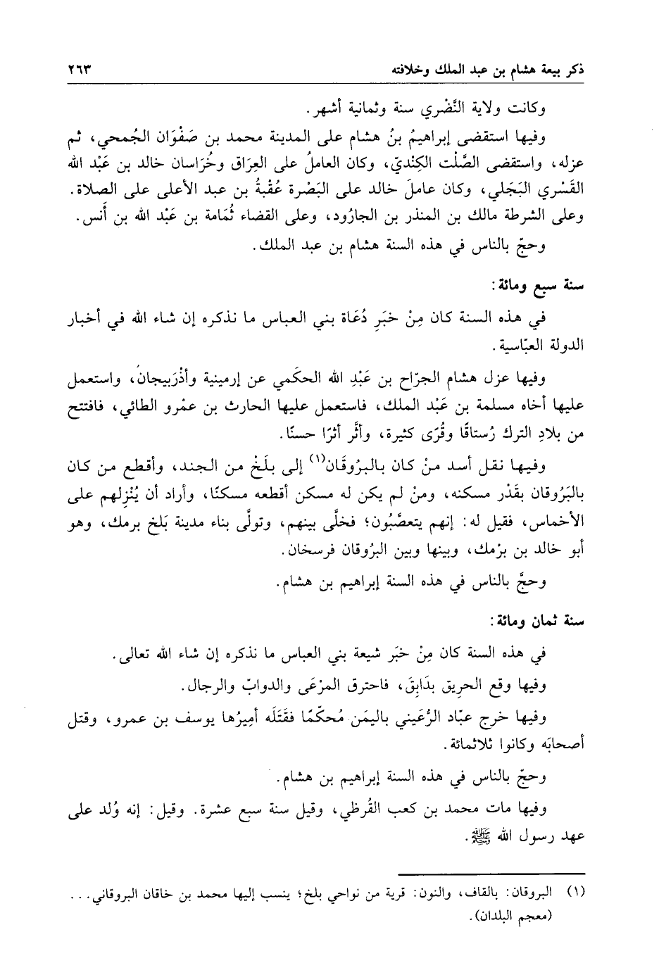 وفيها نقل أسد من كان بالبروقان إلى بلخ من الجند ، وأقطع من كان بالبروقان بقدر مسكنه ، ومن لم يكن له مسكن أقطعه مسكنا ، وأراد أن ينزلهم على الأخماس ، فقيل له : إنهم يتعصبون ؛ فخلى بينهم ، وتولى بناء مدينة بلخ برمك ، وهو أبو خالد بن برمك ، وبينها وبين البروقان فرسخان .