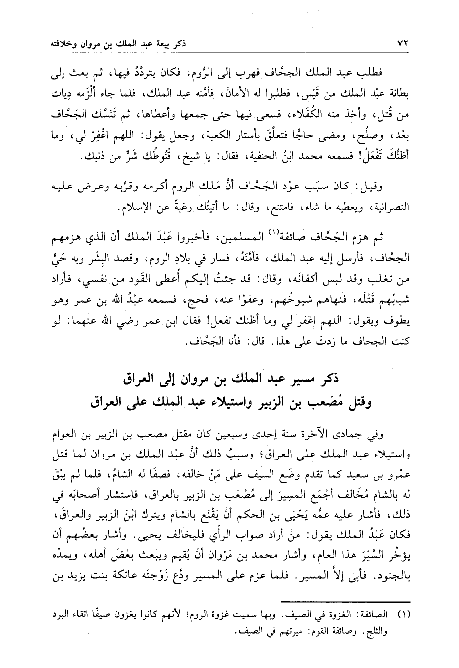 ذكر مسير عبد الملك بن مروان إلى العراق قتل مصعب بن الزبير واستيلاء عبد الملك على العراق