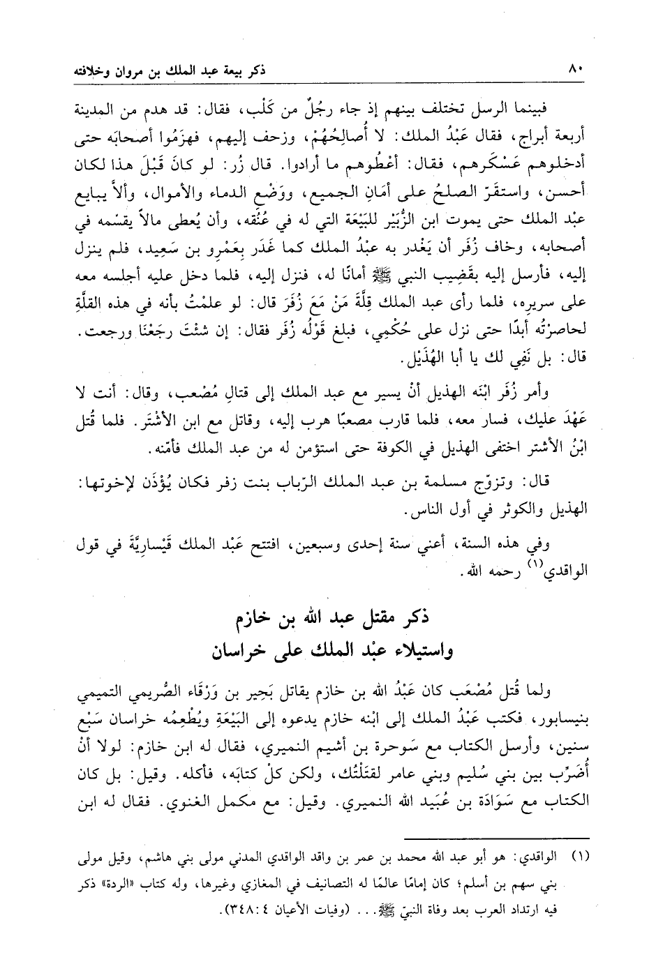ذكر مقتل عبد الله بن خازم واستيلاء عبد الملك على خراسان