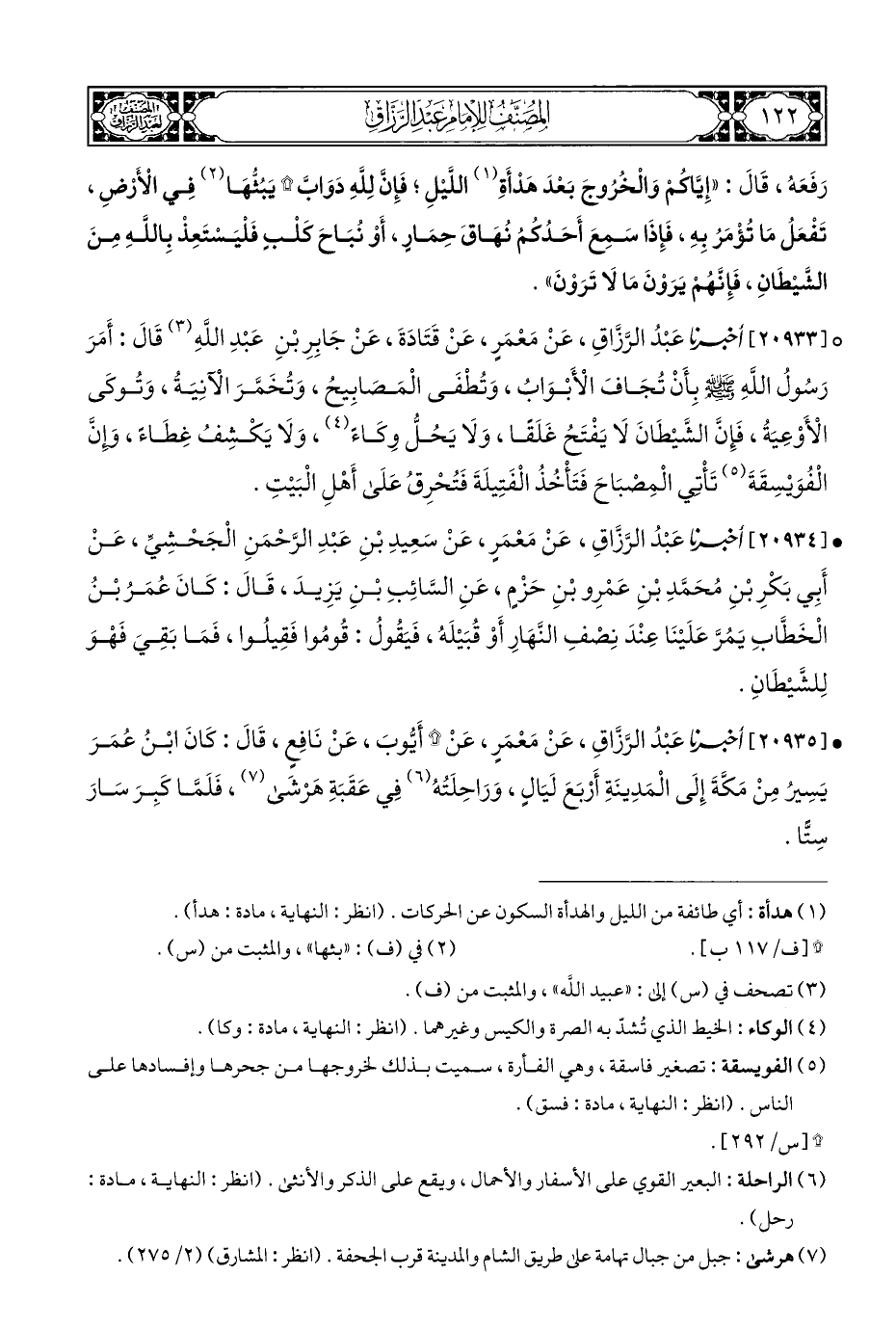 • [٢٠٩٣٥] أخبرنا عَبْدُ الرَّزَّاقِ، عَنْ مَعْمَرٍ، عَنْ * أَيُّوبَ، عَنْ نَافِعٍ، قَالَ: كَانَ ابْنُ عُمَرَ يَسِيرُ مِنْ مَكَّةَ إِلَى الْمَدِينَةِ أَرْبَعَ لَيَالٍ، وَرَاحِلَتُهُ (¬٦) فِي عَقَبَةِ هَرْشَى (¬٧)، فَلَمَّا كَبِرَ سَارَ سِتًّا.