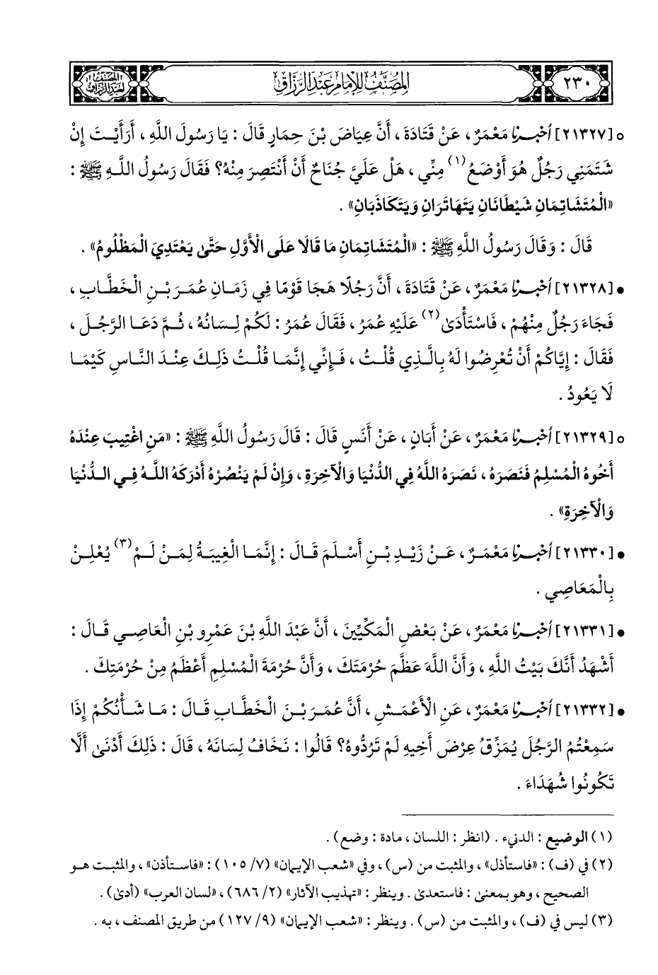 • [٢١٣٣٠] أخبرنا مَعْمَرٌ، عَنْ زَيْدِ بْنِ أَسْلَمَ قَالَ: إِنَّمَا الْغِيبَةُ لِمَنْ لَمْ (¬٣) يُعْلِنْ بِالْمَعَاصِي.