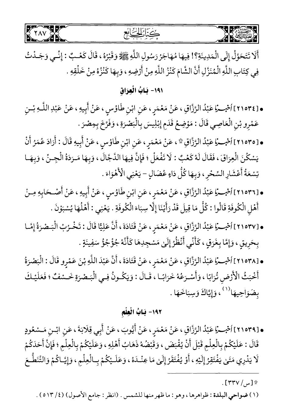 ١٩١ - بَابُ الْعِرَاقِ