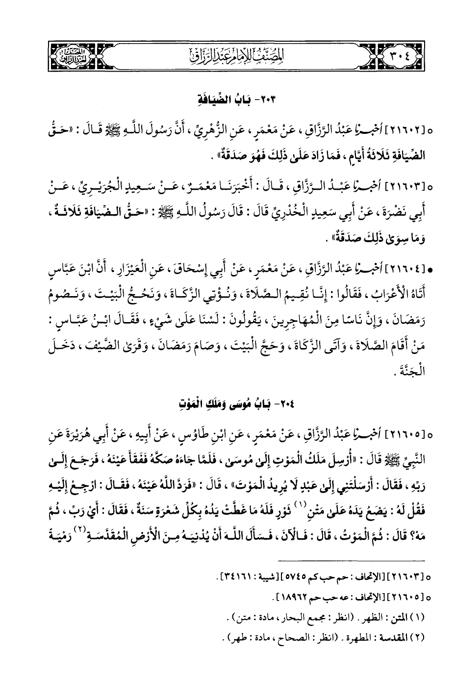 ° [٢١٦٠٢] أَخْبَرَنَا عَبْدُ الرَّزَّاقِ، عَنْ مَعْمَرٍ، عَنِ الزُّهْرِيِّ، أَنَّ رَسُولَ اللهِ - صلى الله عليه وسلم - قَالَ: "حَقُّ الضِّيَافَةِ ثَلَاثَةُ أَيَّامٍ، فَمَا زَادَ عَلَى ذَلِكَ فَهُوَ صَدَقَةٌ".