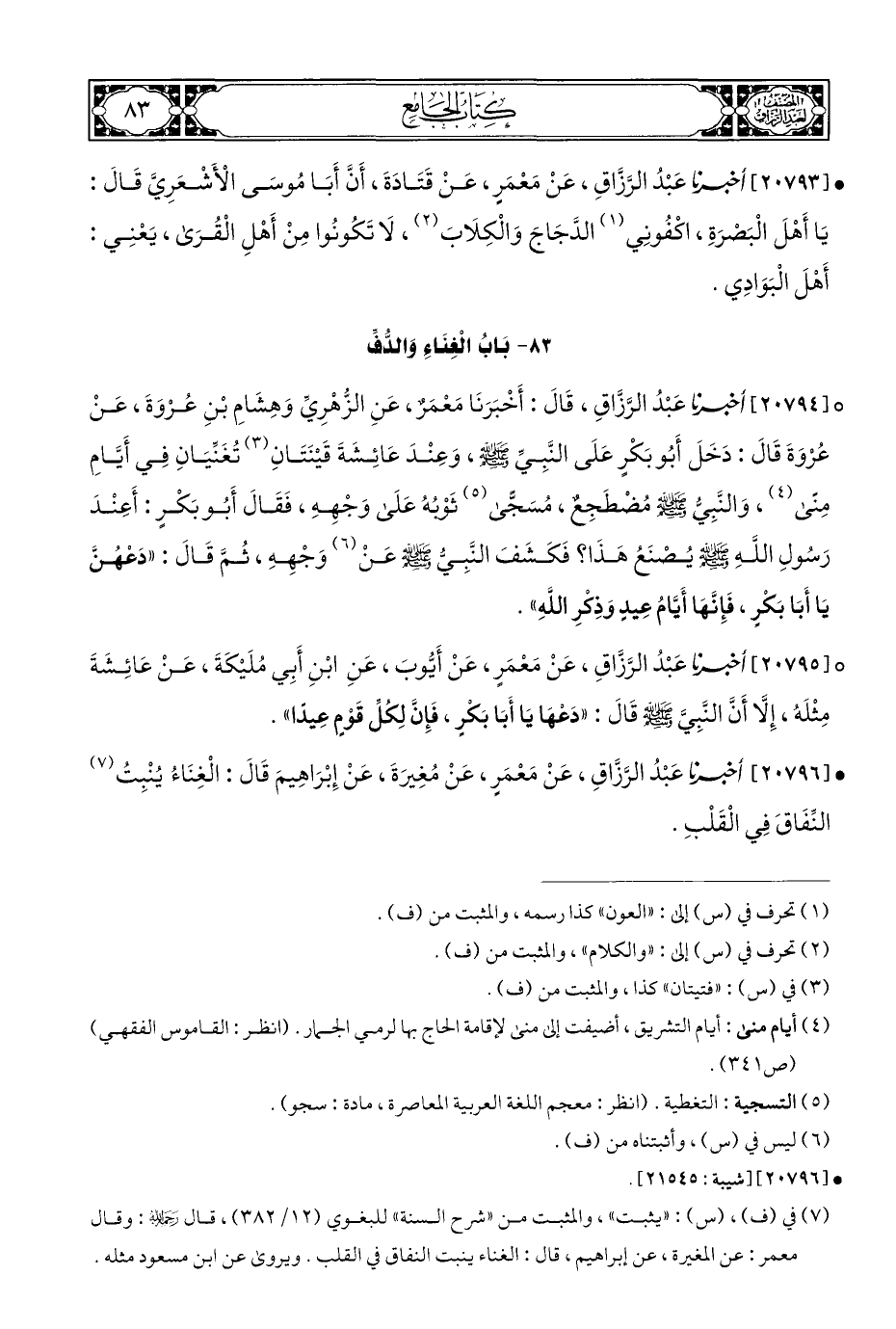 ٨٣ - بَابُ الْغنَاءِ وَالدُّفِّ