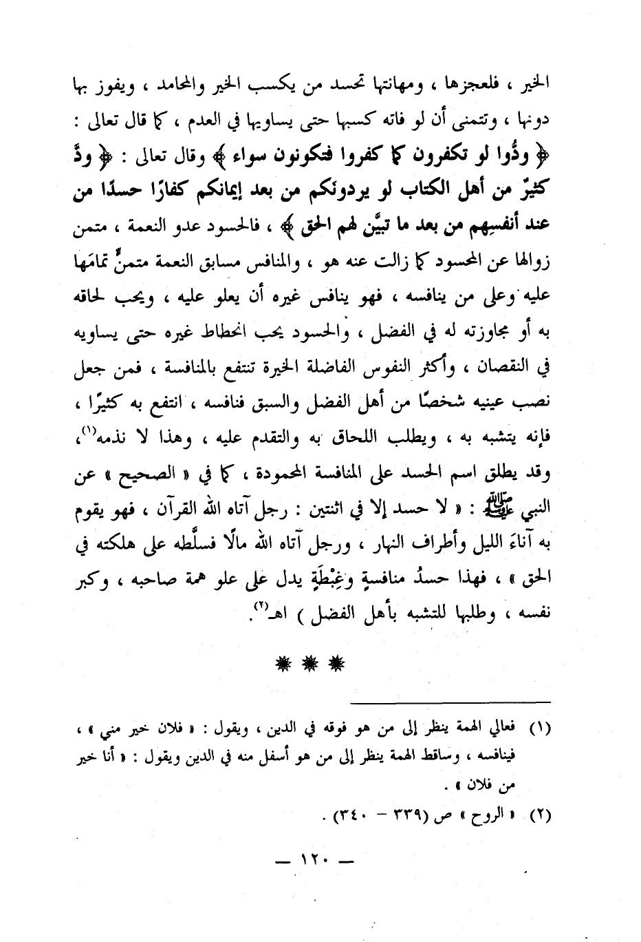(¬1) فعالي الهمة ينظر إلى من هو فوقه في الدين، ويقول: "فلان خير مني"، فينافسه، وساقط الهمة ينظر إلى من هو أسفل منه في الدين ويقول: "أنا خير من فلان".