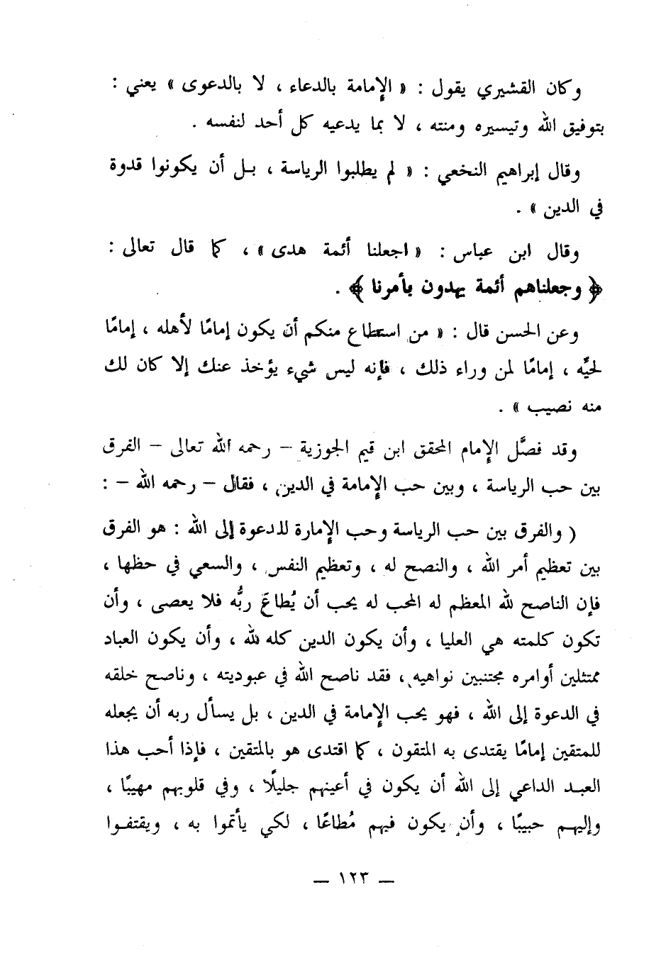 وكان القشيرى يقول: "الإمامة بالدعاء، لا بالدعوى" يعني: بتوفيق الله وتيسيره ومنته، لا بما يدعيه كل أحد لنفسه.
