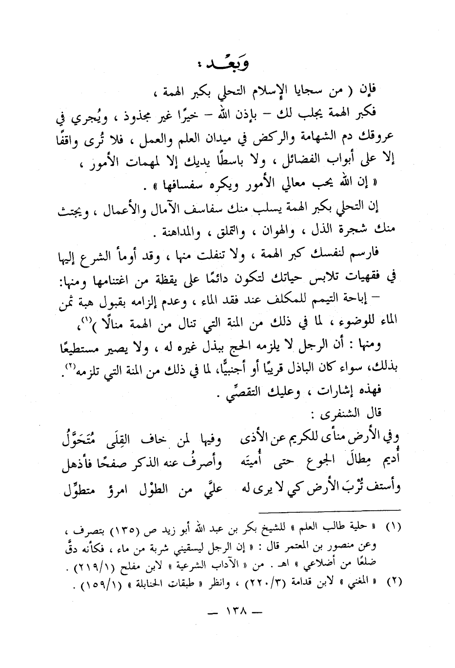 فإن (من سجايا الِإسلام التحلي بكبر الهمة،