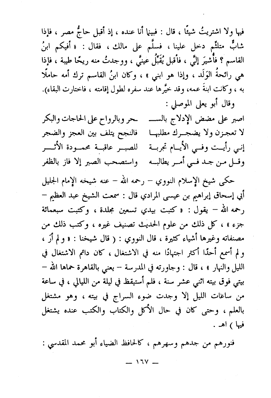 فنورهم من جدهم وسهرهم، كالحافظ الضياء أبو محمد المقدسي: