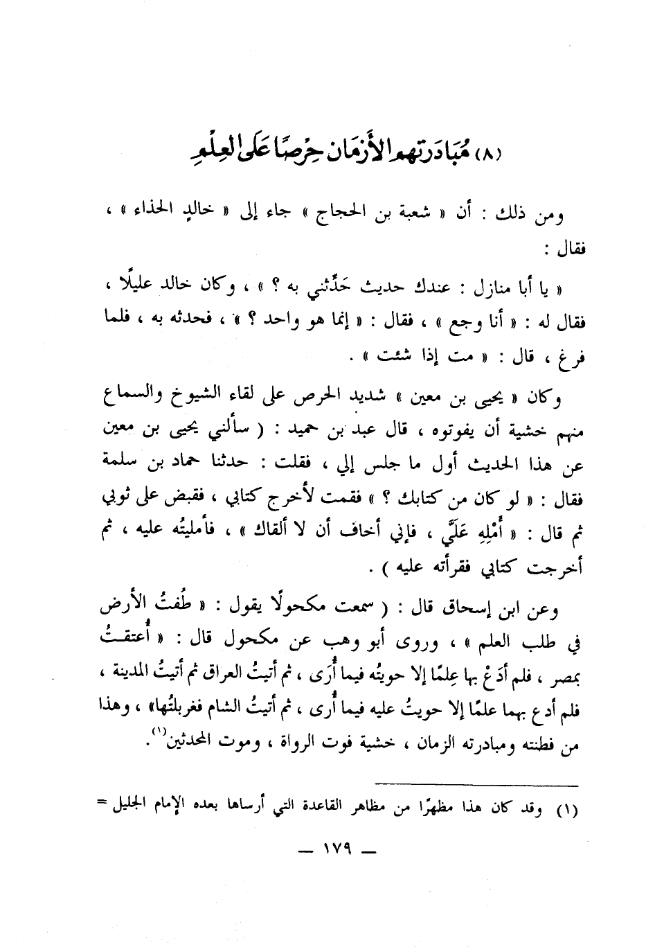(8) مُبَادَرتهم الأَزمَان حِرصًا عَلى العِلمِ
