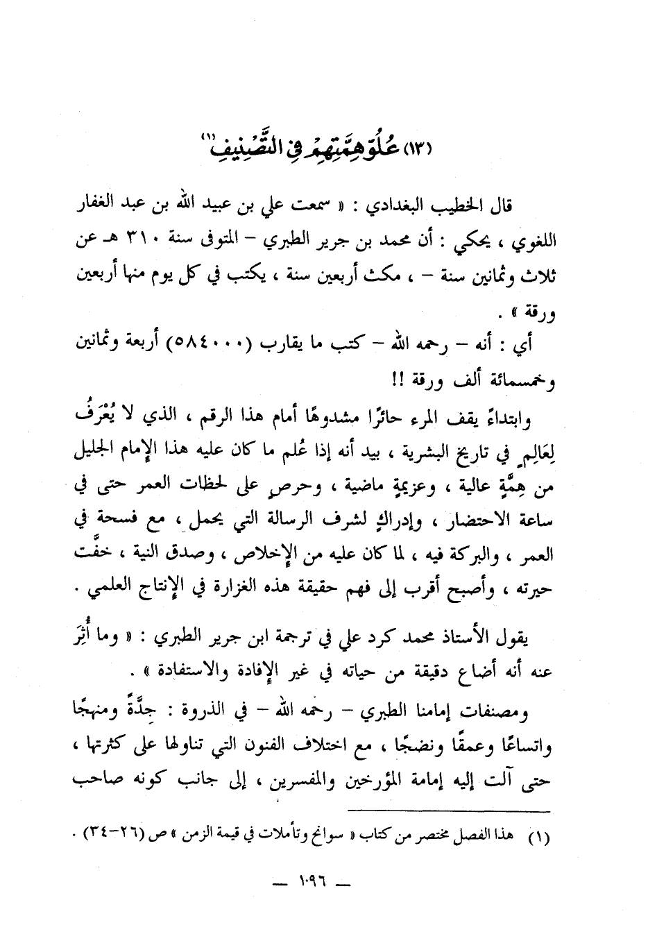 (13) عُلُوّ هِمَّتِهِم في التَّصنِيفِ (¬1)
