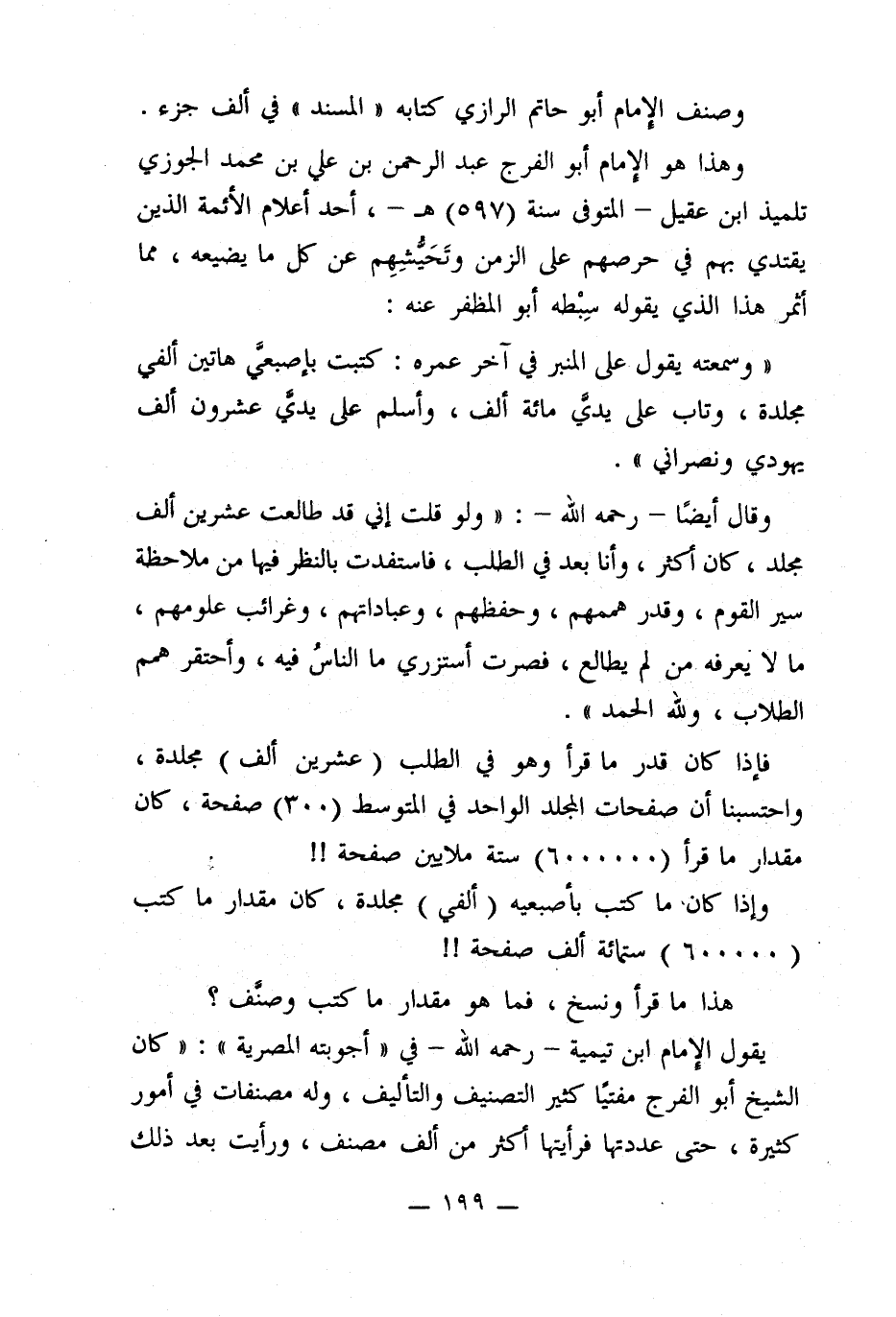 فإذا كان قدر ما قرأ وهو في الطلب (عشرين ألف) مجلدة، واحتسبنا أن صفحات المجلد الواحد في المتوسط (300) صفحة، كان مقدار ما قرأ (6000000) ستة ملايين صفحة!!