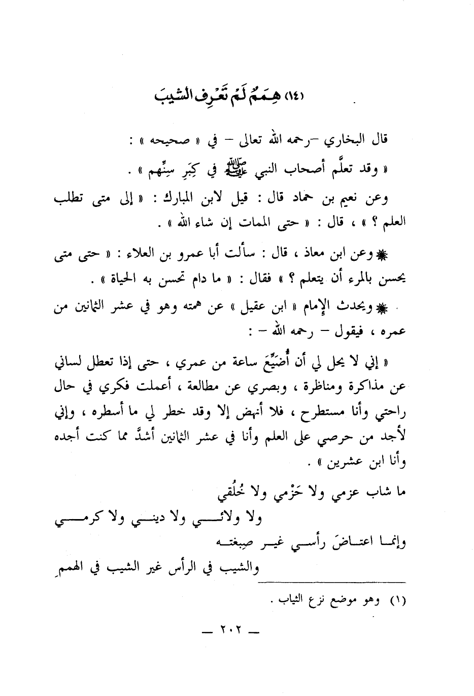 "وقد تعلَّم أصحاب النبي - صلى الله عليه وسلم - في كِبَرِ سِنِّهم".