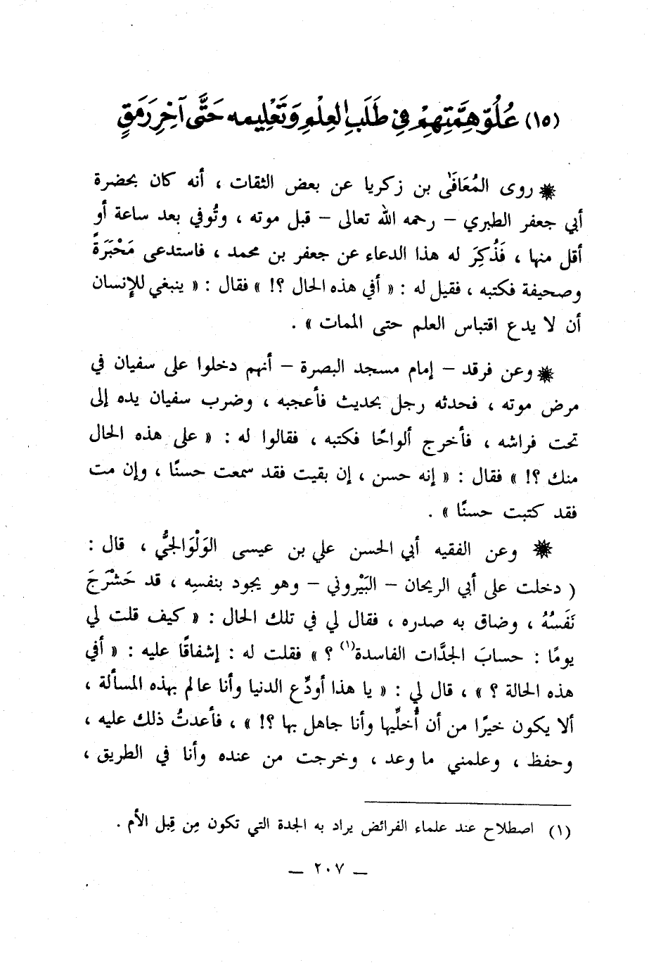 (15) عُلُوّ هِمَّتِهِمْ في طَلَبِ العِلْم ِوَتَعْلِيمه حتَّى آخرِ رَمَقٍ
