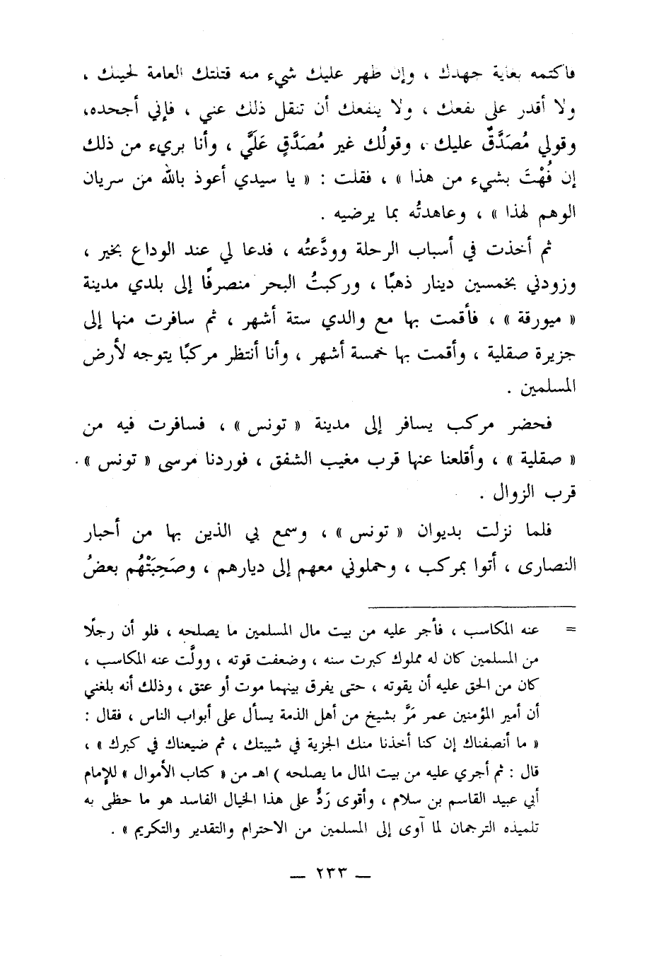 فلما نزلت بديوان "تونس"، وسمع بي الذين بها من أحبار النصارى، أتوا بمركب، وحملوني معهم إلى ديارهم، وصَحِبَتْهُم بعضُ