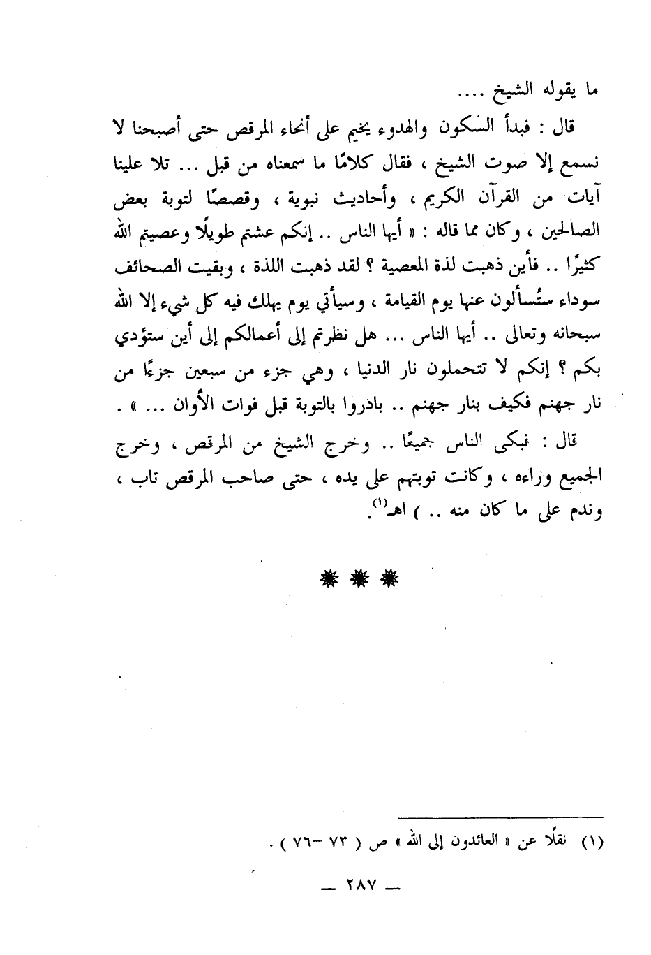 (¬1) نقلاً عن "العائدون إلى الله" ص (73 - 76).