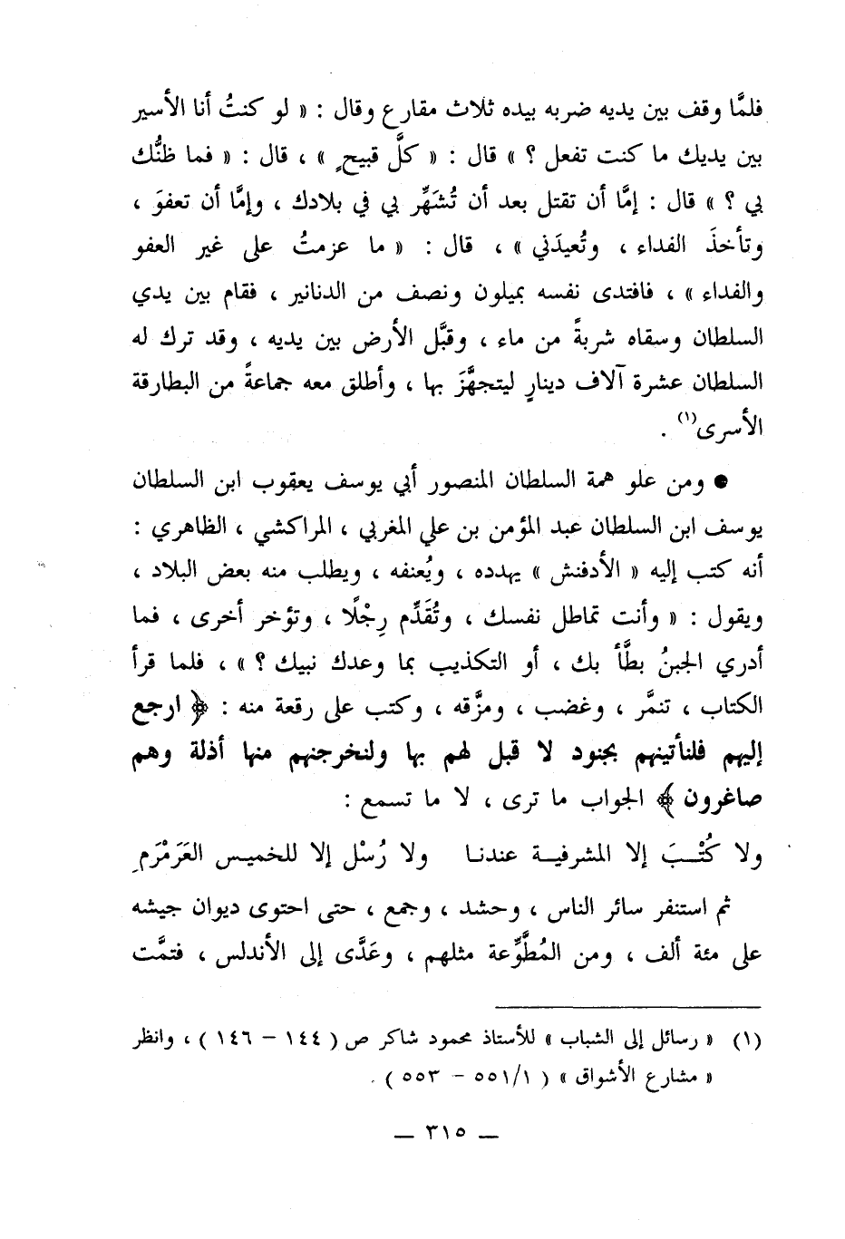 (¬1) "رسائل إلى الشباب" للأستاذ محمود شاكر ص (144 - 146)، وانظر "مشارع الأشواق" (1/ 551 - 553).