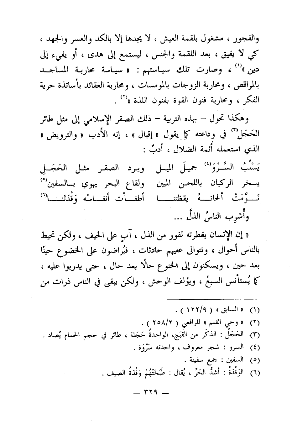 وهكذا تحول -بهذه التربية- ذلك الصقر الإسلامي إلى مثل طائر الحَجَل (¬3) في وداعته كما يقول "إقبال"، إنه الأدب "والترويض" الذي استعمله أئمة الضلال، أدبٌ: