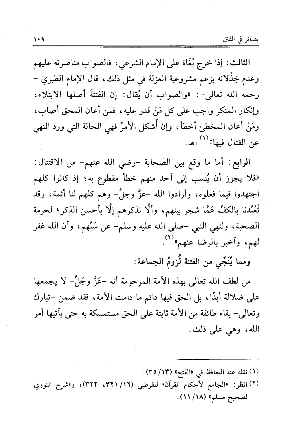 ومما يُنَجِّي من الفتنة لُزومُ الجماعة: